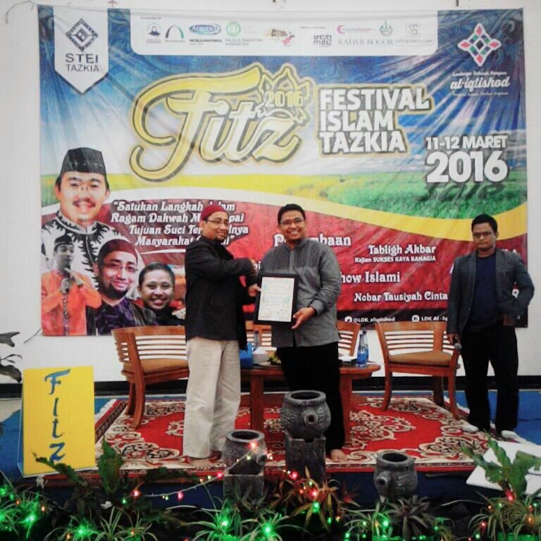 BOGOR – Lembaga Dakwah Kampus Iqtishod of Tazkia University hold the Islamic Festival Tazkia. One of the ceremony is a talk show with Habiburrahman El-Shirary, author of the bestselling novel Ayat-Ayat Cinta (12/03/2016).